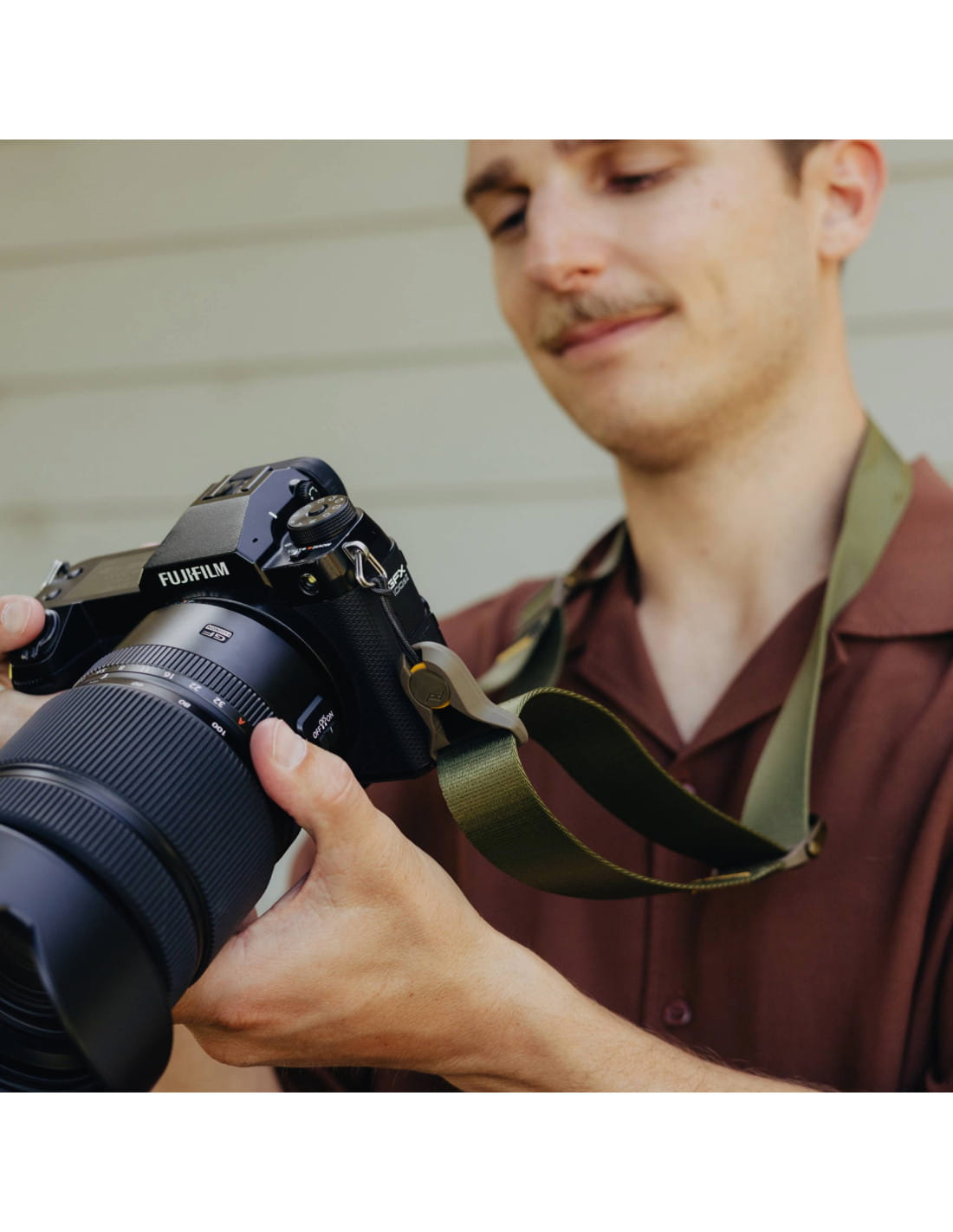 Zastosowanie innowacyjnego systemu kotwic umożliwia proste i szybkie odpięcie aparatu od paska umożliwiając podczepienie go do innych pasków Peak Design (np. paska na rękę CLUTCH).