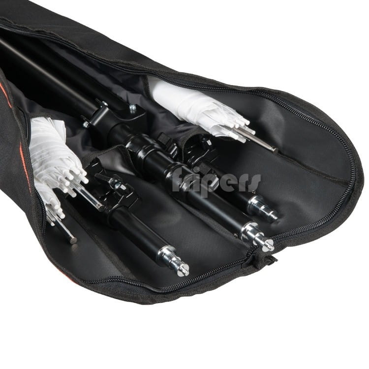 Pokrowiec FreePower 160cm przeznaczony do przechowywania i transportowania dużych statywów lub / i parasolek studyjnych. Niezbędny dla osób z mobilnym studiem, które często przenoszą swoje studio i chcą mieć porządek w swoim sprzęcie. Podwójny, solidny zamek błyskawiczny umożliwia rozłożenie torby na płasko - wygodne wyjmowanie i chowanie sprzętu. Wewnątrz pokrowiec posiada cztery kieszenie na parasolki lub statywy. Długie uszy pozwolą założyć zapakowany pokrowiec na ramię. Pokrowiec jest wykonany w Polsce.