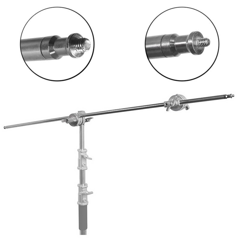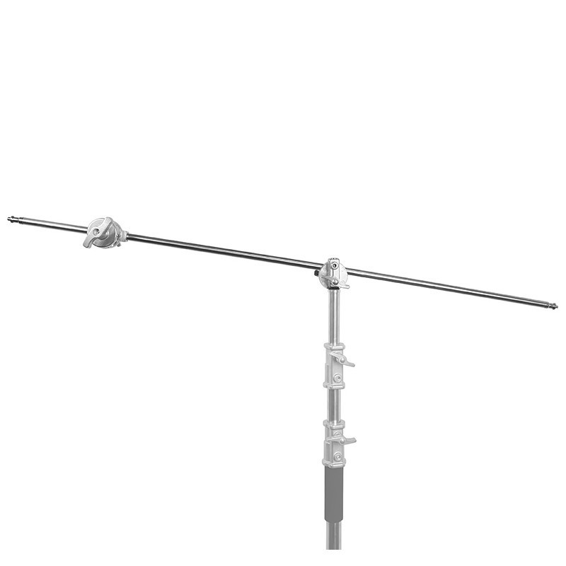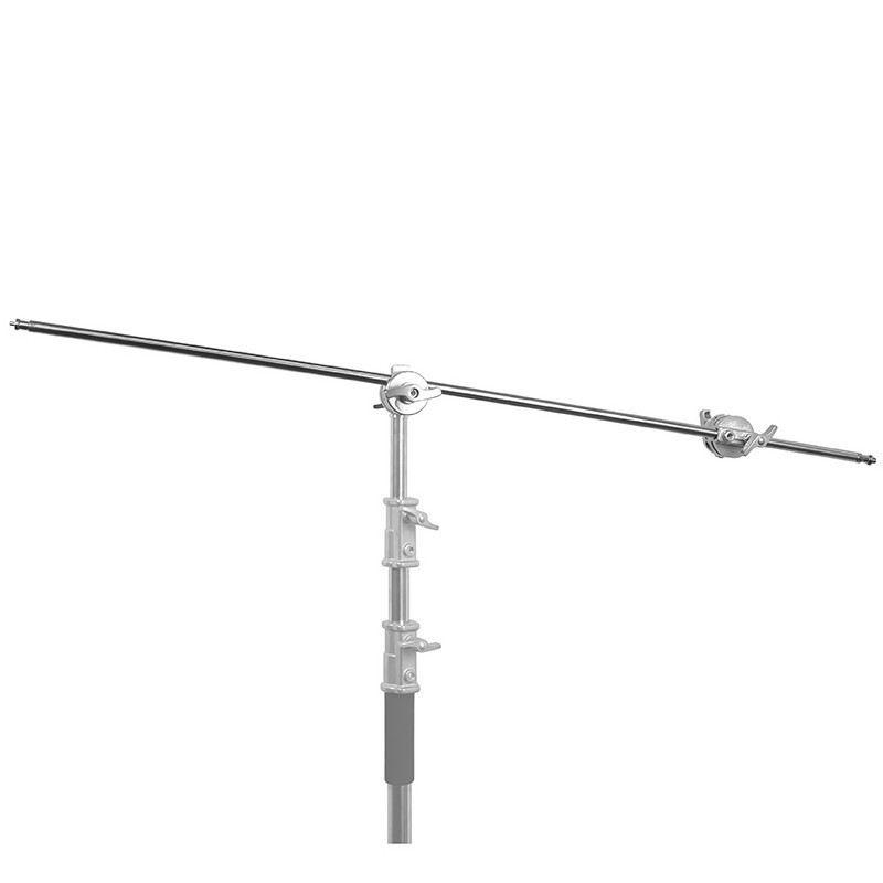 Poprzeczka Cross Bar do statywu typu C-stand o długości 125 cm to wytrzymałe ramię, umożliwiające stworzenie zaawansowanego zestawu boom. Wykonane z metalu – jest wytrzymałe, a jednocześnie lekkie, przez co nie obciąża dodatkowo statywu i umożliwia zawieszenie nawet ciężkich lamp czy modyfikatorów światła. Przekrój belki to standardowe 16 mm. Poprzeczka posiada z dwóch stron profilowane trzpienie – trzpień z jednej strony jest zakończony gwintem 1/4 cala, zaś z drugiej – 3/8 cala.