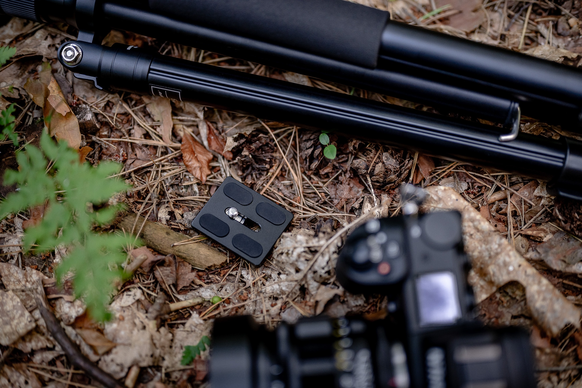 - płytka szybkiego montażu zgodna ze standardem Arca-Swiss, zabezpieczona silikonową okładziną