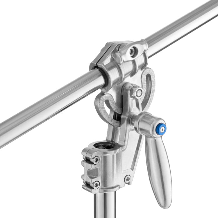 Boom ma wbudowany trzpień 16mm, który można ustawić równolegle do osi boomu, poprzecznie, lub schować, gdy nie jest potrzebny. Obok trzpienia znajduje się także gniazdo w standardzie ARRI.