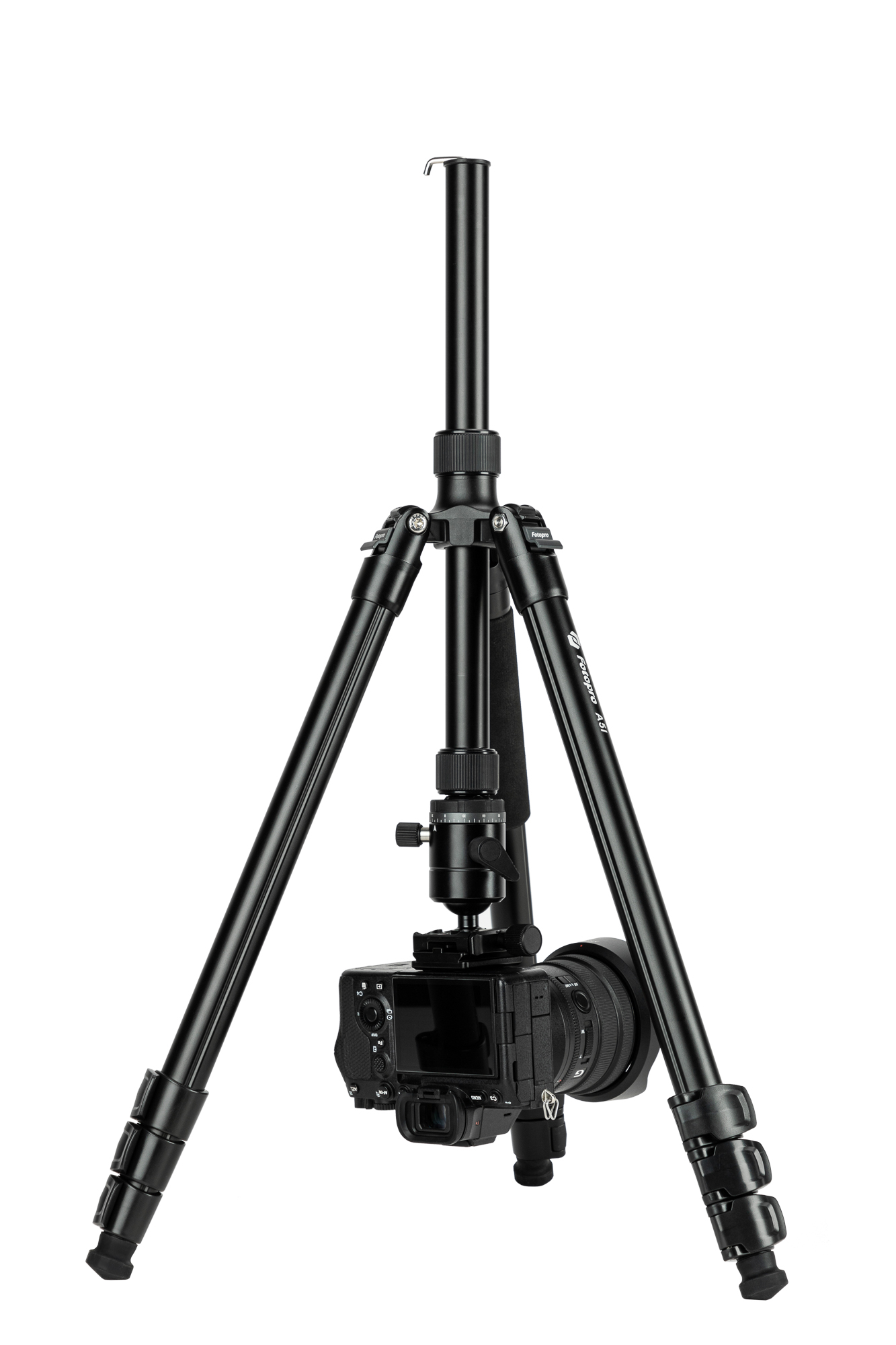 Nogi statywu Fotopro A5i zakończono gumowymi stopkami, pod którymi ukryto solidne kolce. Dzięki temu z łatwością dostosujesz go do podłoża. Gumowe nakładki zapewniają przyczepność na twardych powierzchniach, a po ich odkręceniu zyskujesz metalowe kolce do pracy w terenie, na śniegu, piasku czy kamieniach. Wbudowany hak umożliwia dociążenie statywu plecakiem lub torbą, co gwarantuje jeszcze większą stabilność w wietrznych warunkach. To niezawodne wsparcie podczas pracy – w każdych warunkach oświetleniowych i pogodowych.
