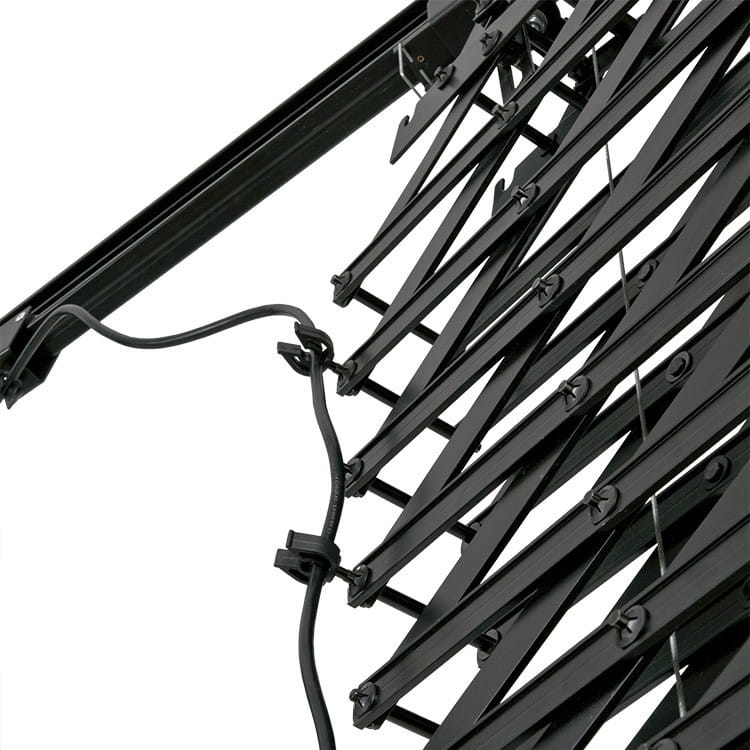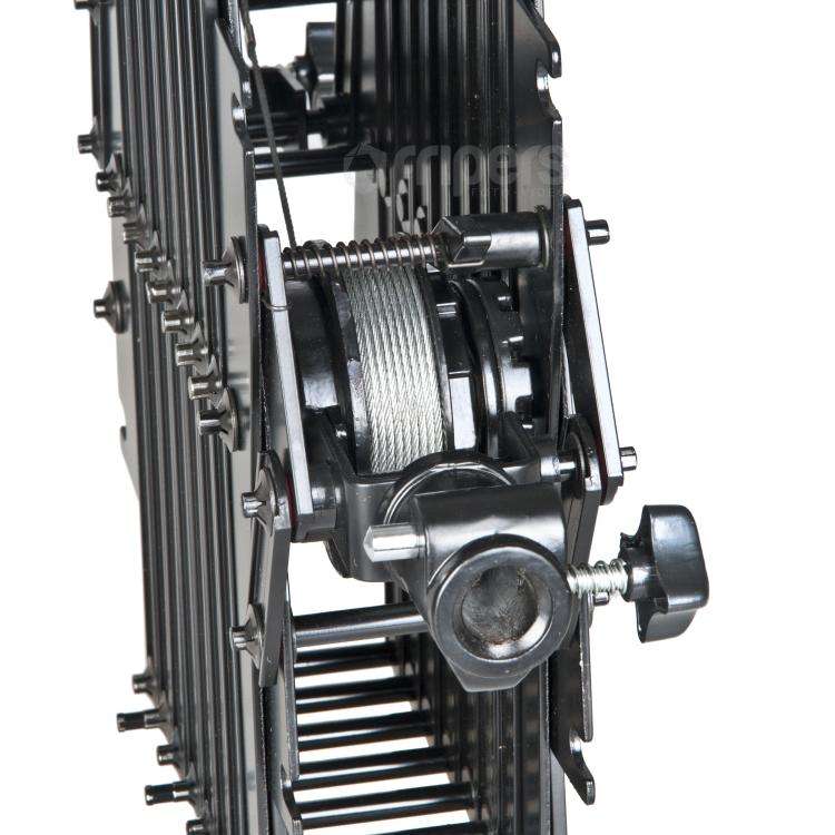 System oparty jest o szyny jezdne, do których zamocowane są na wózkach szyny poprzeczne, na których, również na wózkach są zawieszone pantografy. Pantograf wyposażony jest w sprężynę, dzięki której w łatwy i szybki sposób zmienisz wysokość oświetlenia. Bezpieczeństwo pracy całego systemu zapewniają specjalne metalowe linki, chroniące przed ewentualnym upadkiem sprzętu. Standardowe końcówki 16mm pozwalają na montaż większości lamp studyjnych. Przewody lamp mocuje się w specjalnych uchwytach, dzięki czemu nie będą one zwisać niepotrzebnie. Pantografy posiadają system regulacji siły naciągu linki.