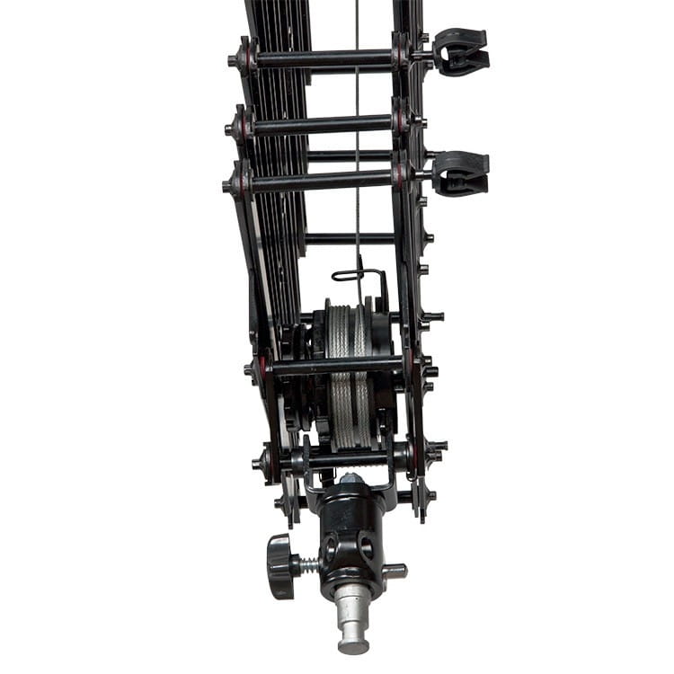 - Pantograf zakończony typowym trzpieniem 16 mm (5/8"), na którym zamontujesz każde oświetlenie studyjne, w tym wszystkie lampy błyskowe oraz lampy światła ciągłego.