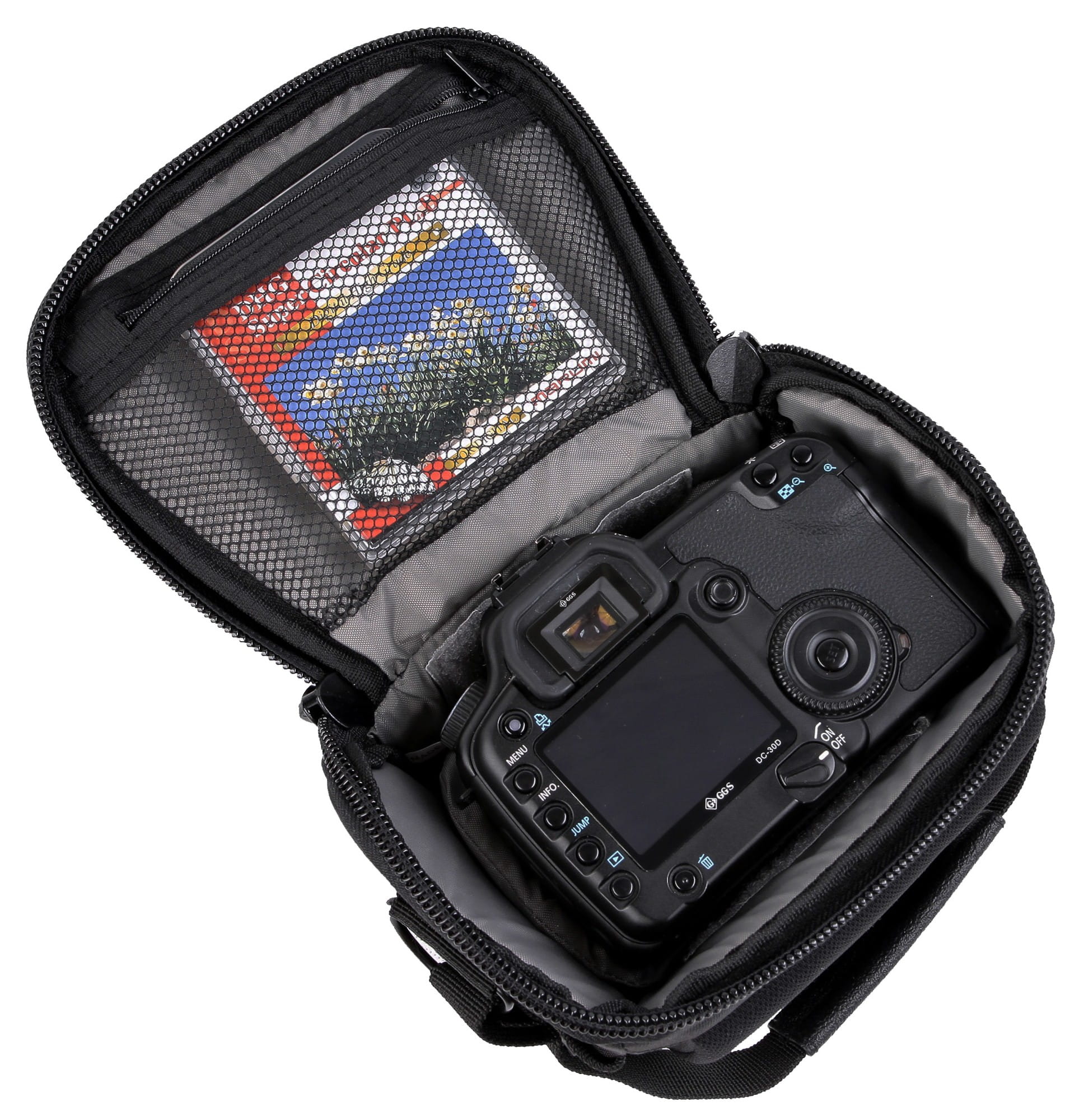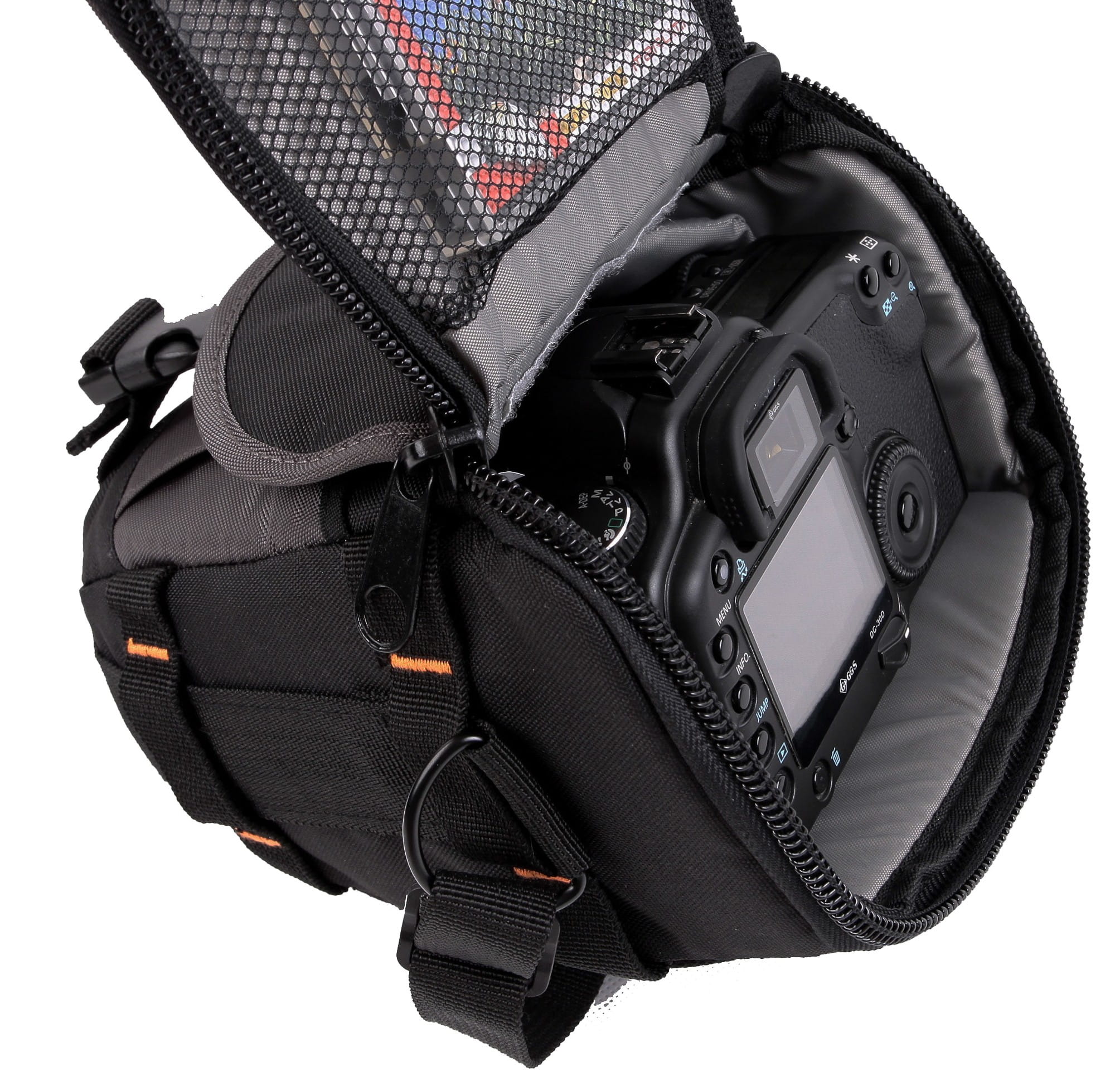 • pomieści średnią lustrzankę z średniej wielkości obiektywem oraz szereg innych akcesoriów,